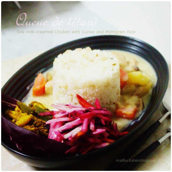 Soy milk creamed Chicken with Cumin and Multigrain Rice